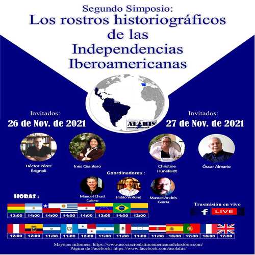 Los días 26 y 27 de noviembre de 2021 se desarrolló el Segundo Simposio: Los rostros historiográficos de los debates sobre las Independencias Iberoamericanas, con los siguientes invitados: